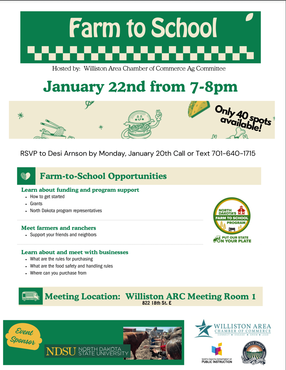Farm-to-School Opportunities: -Learn about funding and program support -Meet farmers and ranchers -Learn about and meet with businessImages